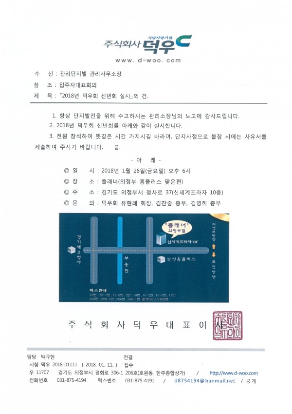 ■ 2018년 덕우회 신년회를 개최합니다. 페이지 정보 작성자 최고관리자 (115.♡.139.242) 작성일18-01-11 13:06 조회6,818회 댓글0건 관련링크 이전글 다음글 목록 본문 전원 참석하시어 뜻깊은 시간을 가졌으면 좋겠습니다.단지사정으로 불참시에는 사유서를 제출하여 주시기 바랍니다. 댓글목록 등록된 댓글이 없습니다. 이전글 다음글 목록