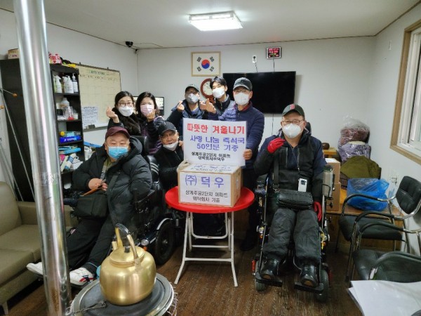 장애인쉼터에 연탄 및 김치 외 먹거리 기증으로 코로나로 더욱더 힘든 이번 겨울나기에 작은 보탬이 되었으면 하는 바램입니다.
